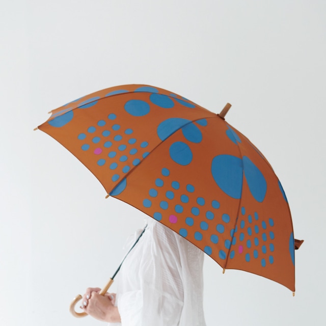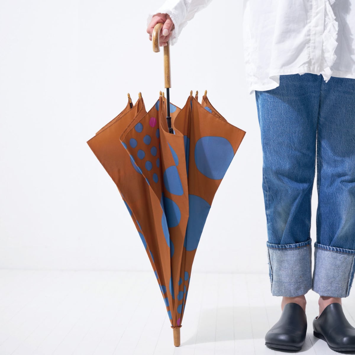 雨傘 丸いフォルムと木のパーツ 配色ドットがポイント 親骨 60cm (手開き) 直径 95cm 全長 82cm 重さ 300g 素材 polyester100% 柄の出方は生地の裁断により 一点一点異なります ご指定は出来ませんので ご了承の上お買い求め下さい 光の当たり具合やパソコンなどの環境によって 実際の色味と異なって見える場合がございます 予めご了承ください