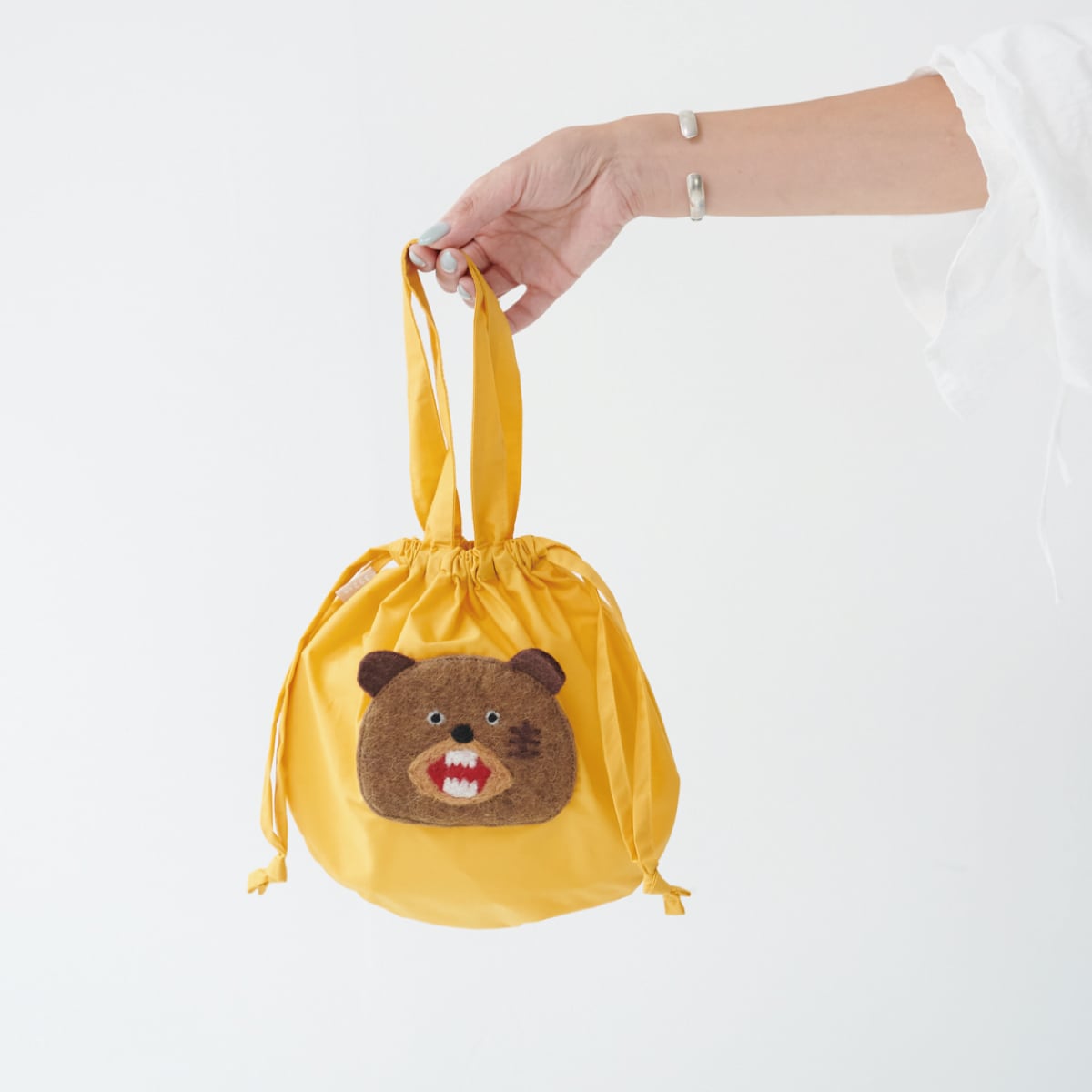フエルトモチーフがついた巾着