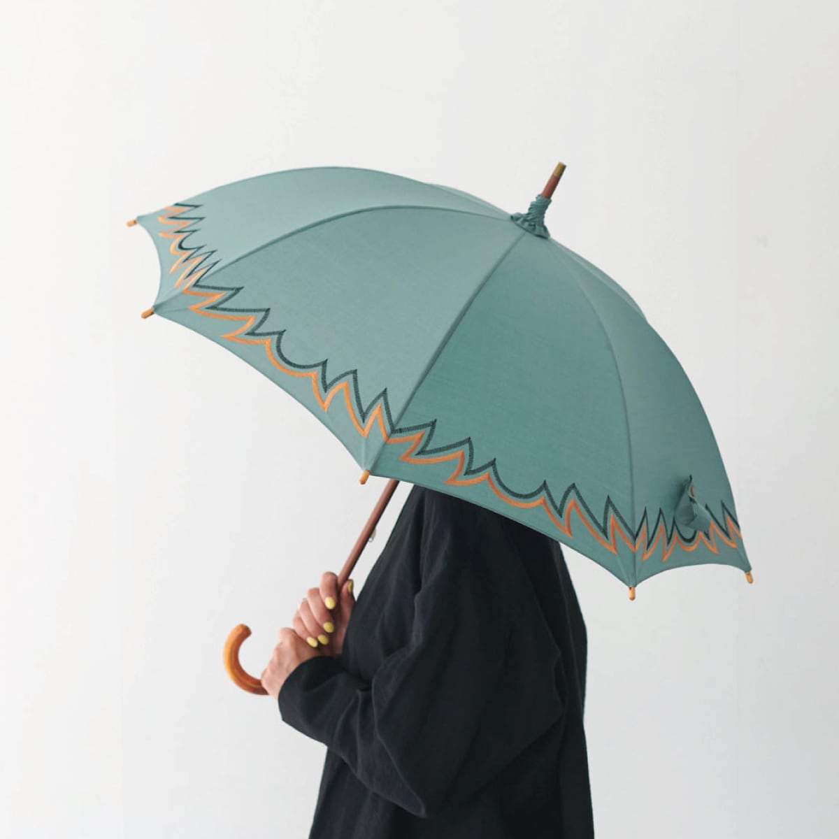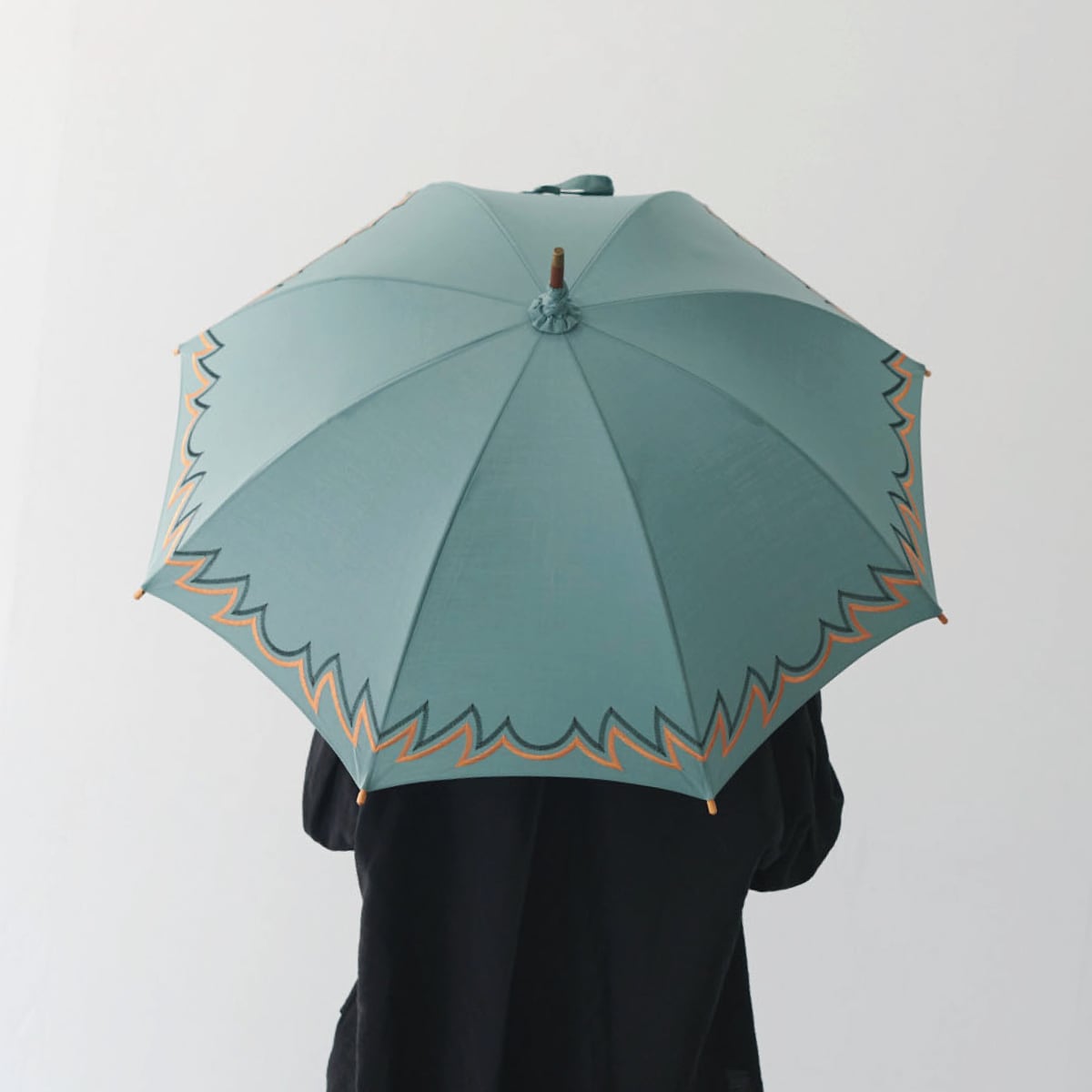 綿素材の傘生地に刺繍を施した長傘
