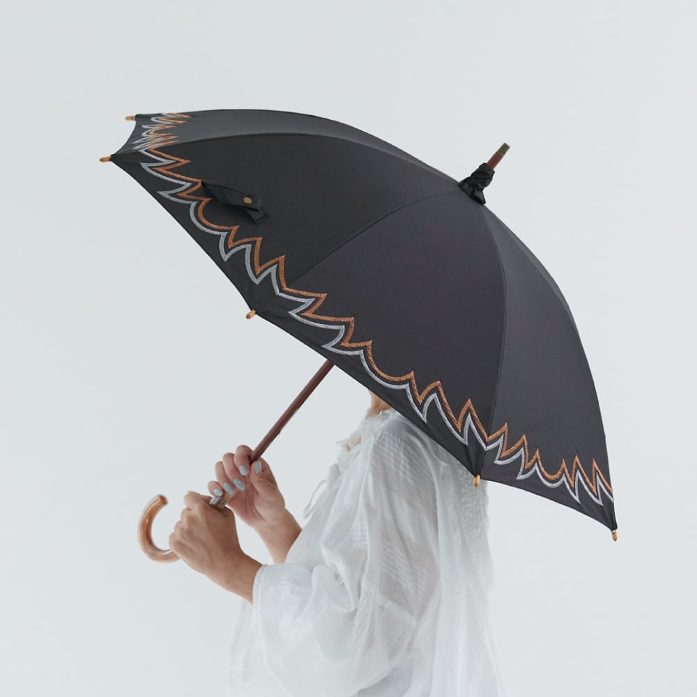 綿素材の傘生地に刺繍を施した長傘