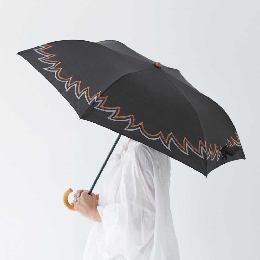綿素材の傘生地に刺繍を施し