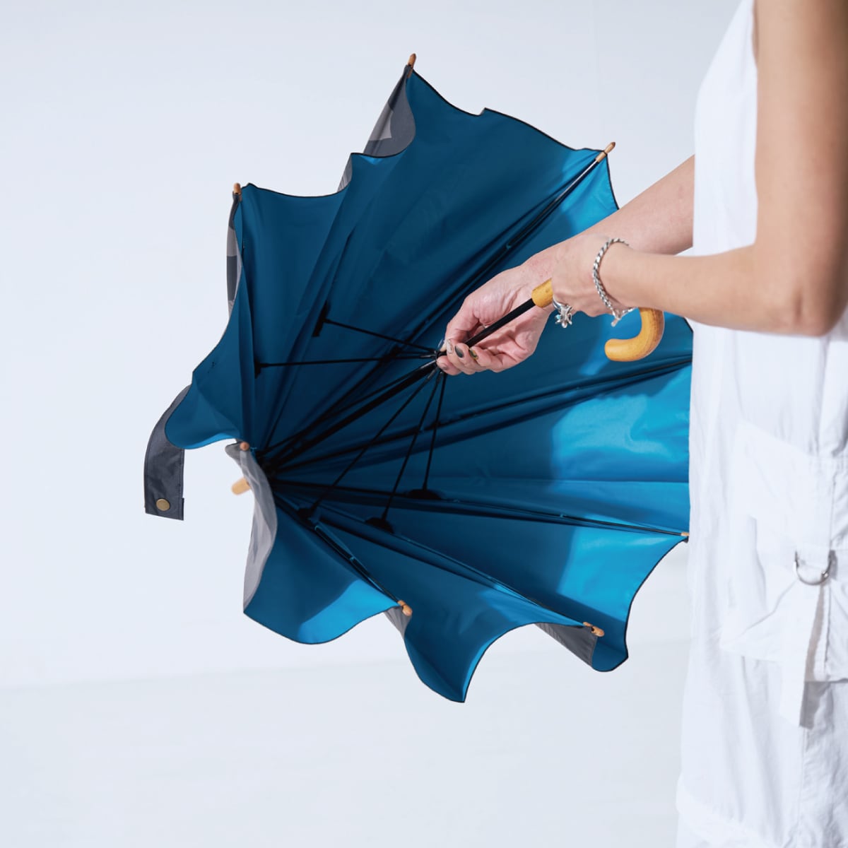 チラリと見える傘裏のカラーもポイント